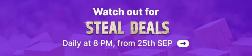 Get ready for amazing savings! Flipkart Steal Deals go live at 08:00 PM IST on September 29, 2025. Don’t miss out on massive discounts across electronics, health, home essentials, and more, with up to 80% off on select items.