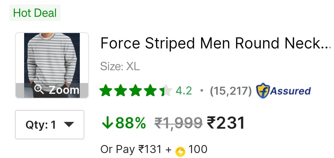 Originally priced at ₹1999, get this stylish and comfortable t-shirt for just ₹131 (plus shipping charges, if applicable).