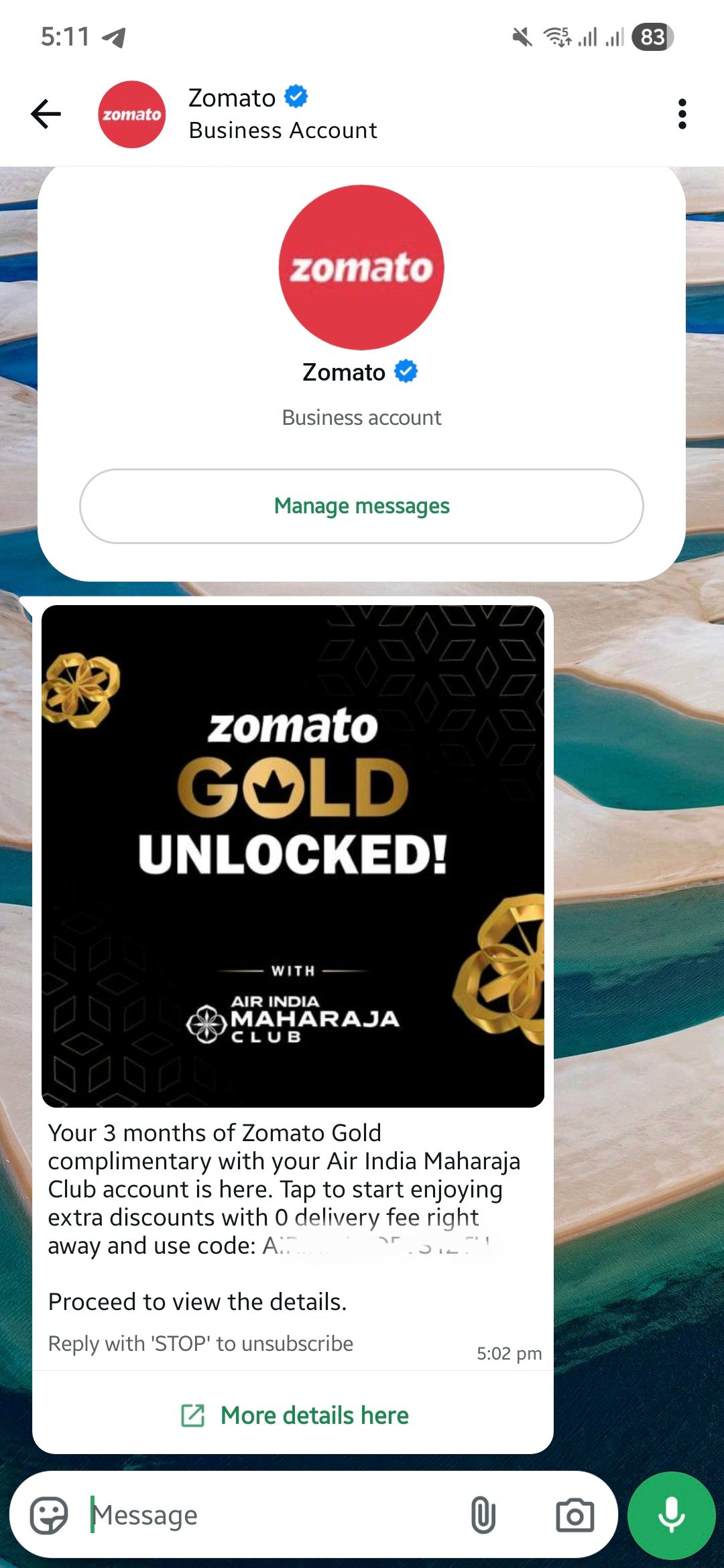 - Within a few days, you will receive your unique 3-month Zomato Gold activation code via WhatsApp from Zomato.