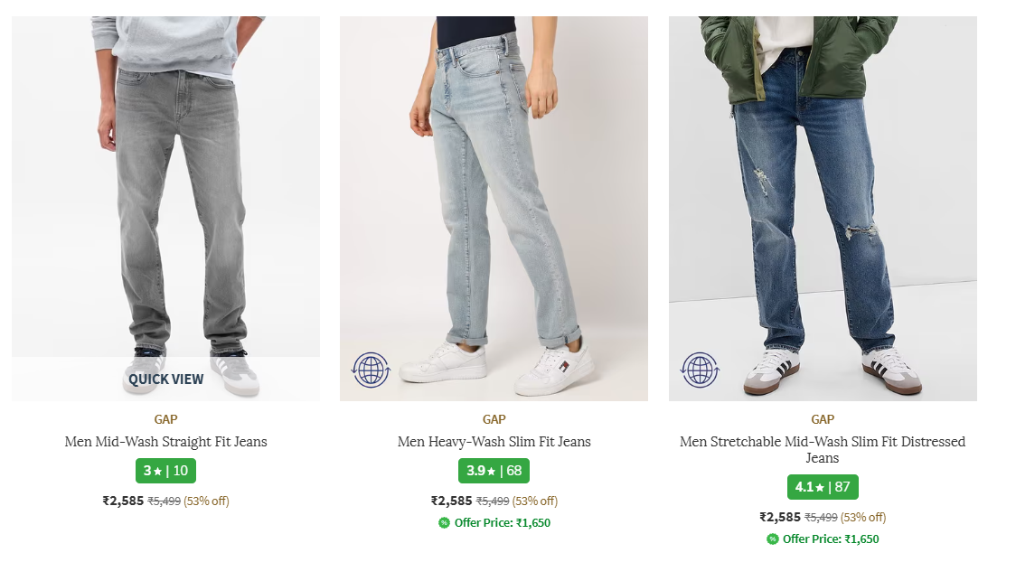 Discover incredible savings on GAP Men's Jeans at Ajio! Enhance your style and comfort with a diverse range of jeans, now available with up to 53% off. This limited-time offer is perfect for updating your wardrobe with premium denim.