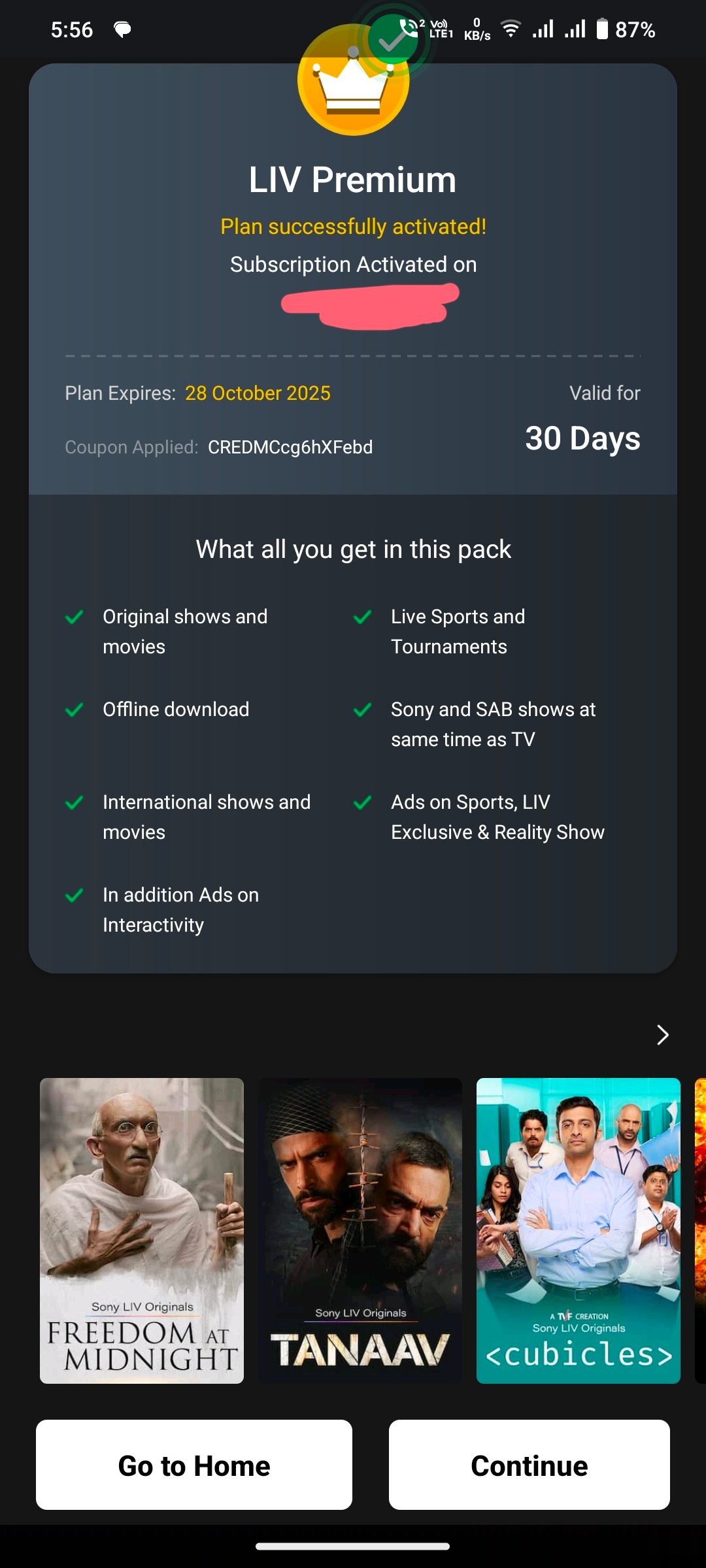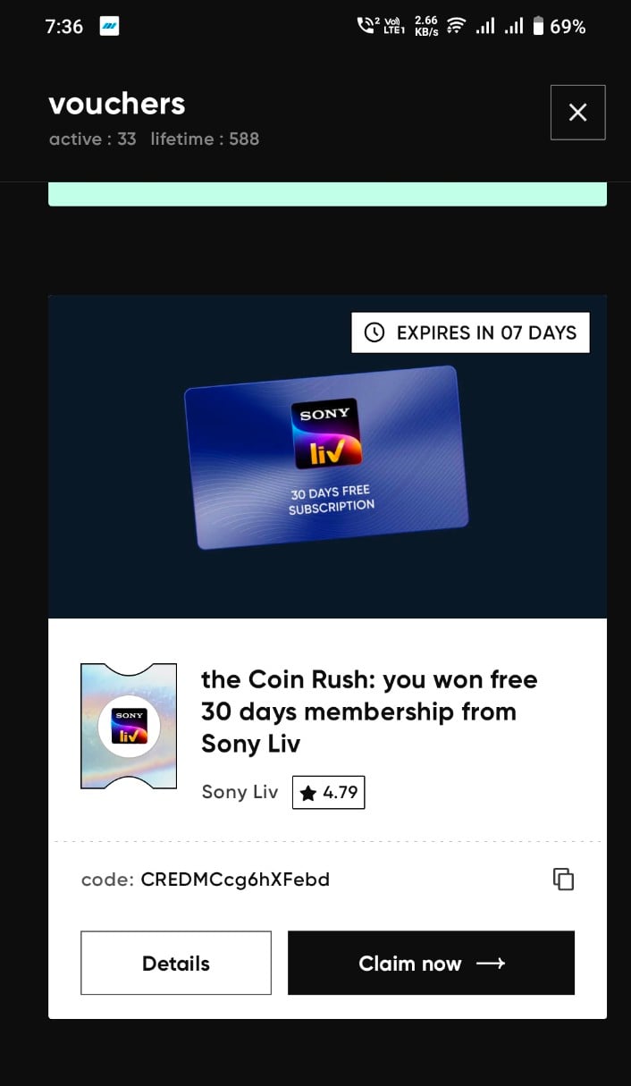 Unlock a FREE 30-day SonyLIV Premium subscription by redeeming just 10,000 CRED Coins.