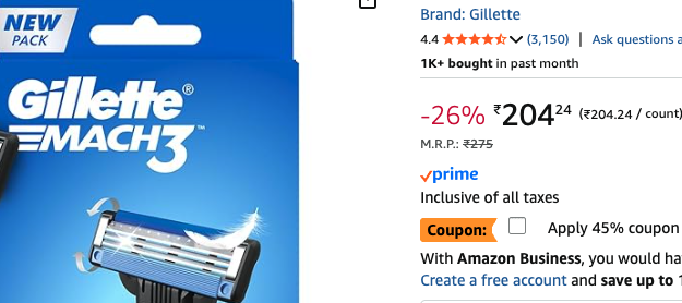 Grab the Gillette Mach3 New Blade Razor (1 Count) at a fantastic 59% discount on Amazon! Originally ₹275, now only ₹112. This advanced razor provides a superior shave experience.