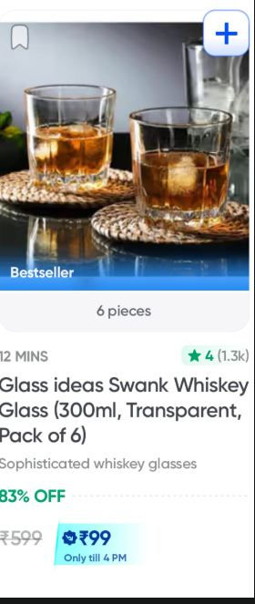 Grab the Glass Ideas Swank Whiskey Glasses (Set of 6, 300ml Transparent) for an incredible price of ₹99! That's a massive 83% off the retail price of ₹599.