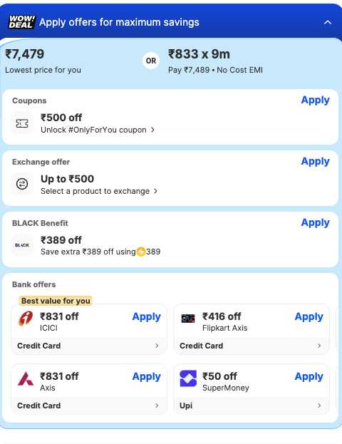- Partner Offer: Get 5% off up to ₹750 on furniture with this purchase.