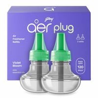 Keep your home consistently fresh with the Godrej aer Plug Electric Air Freshener. This pack includes two 20ml Violet Bloom refills, designed to provide up to 120 days of delightful fragrance.