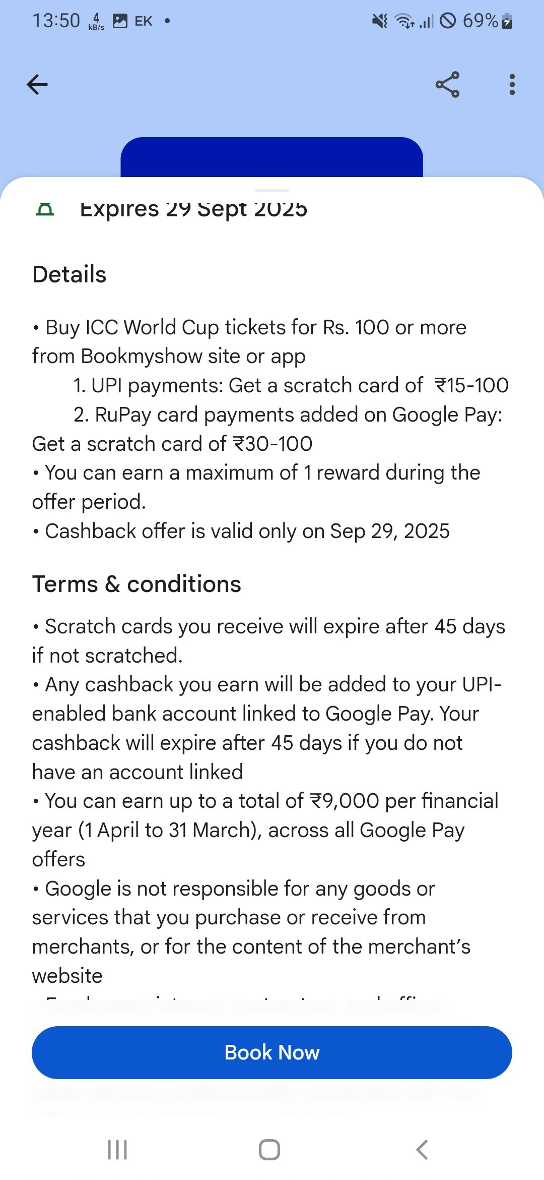 Get ready for the ICC World Cup with a special offer from Google Pay! Participate in the Flash Sale and receive assured cashback of up to ₹100 when you purchase ICC World Cup tickets.