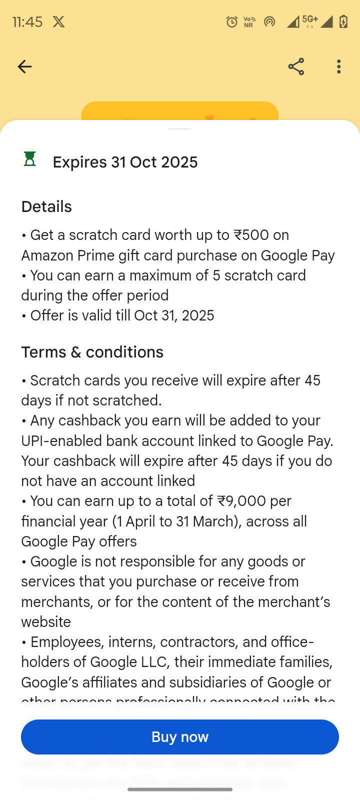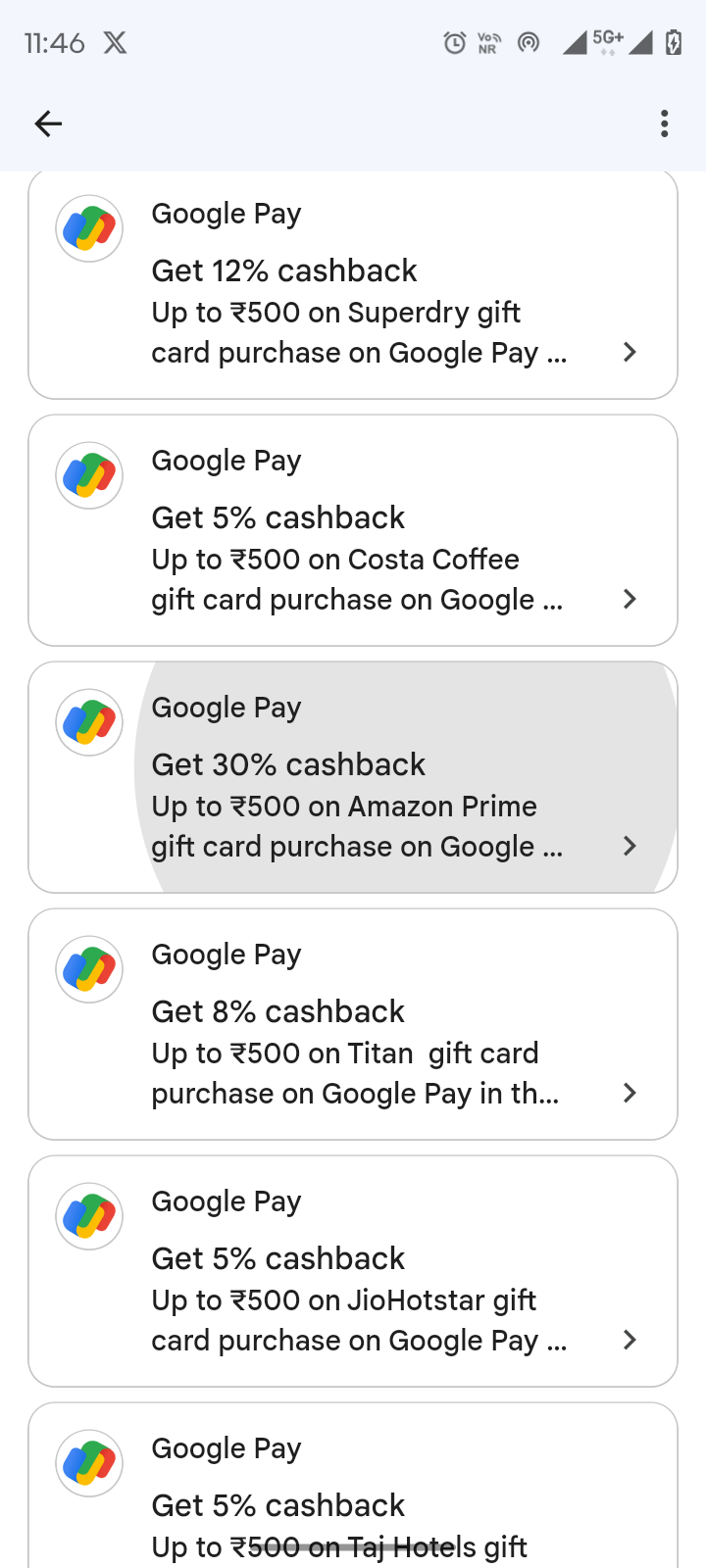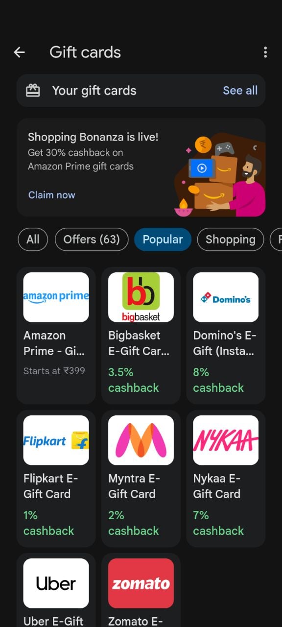 Get an exclusive 30% cashback (up to ₹500) when you purchase an Amazon Prime gift card through Google Pay. This limited-time offer allows you to save significantly on your Amazon Prime membership.