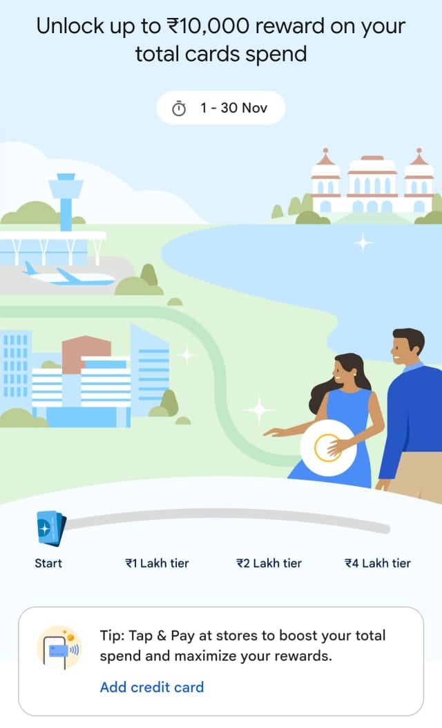 Maximize your savings with the latest Google Pay offer! Combine your total card spends between November 1 and November 30, 2025, to unlock exciting rewards worth up to ₹10,000.