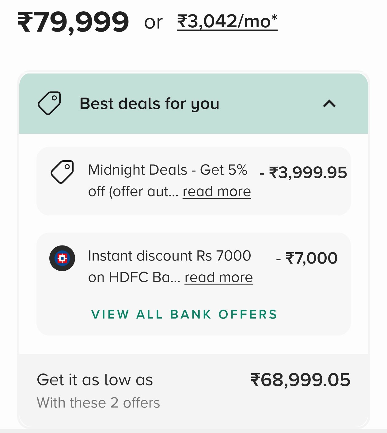 - ₹7000 instant discount with HDFC Bank credit card. Discount applied on payment page.