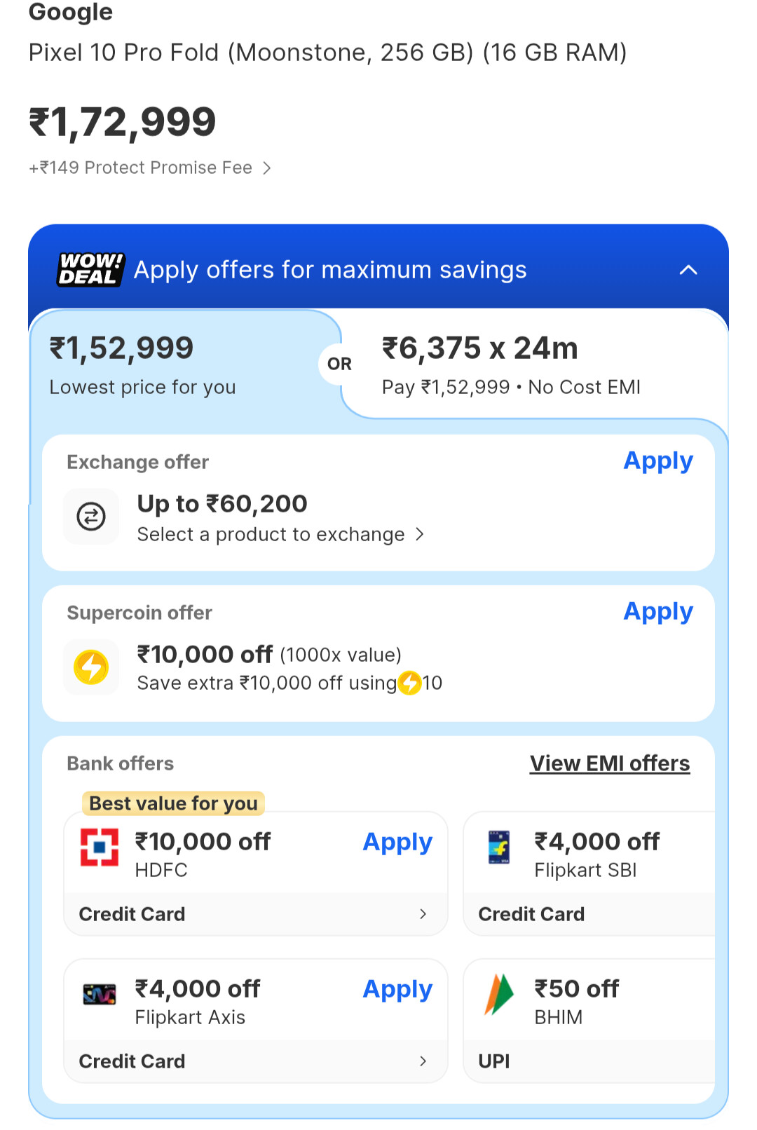 Don't miss out on this incredible deal for the Google Pixel 10 Pro Fold Moonstone (256GB, 16GB RAM) smartphone on Flipkart!