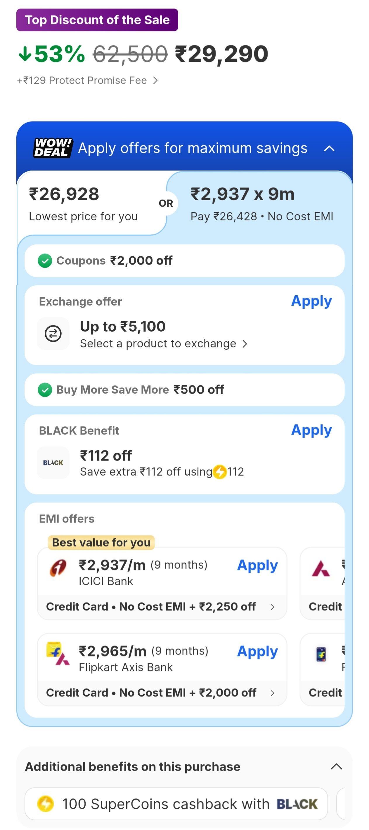 - Avail ₹2250 instant discount with ICICI Bank credit card No Cost EMI transactions.