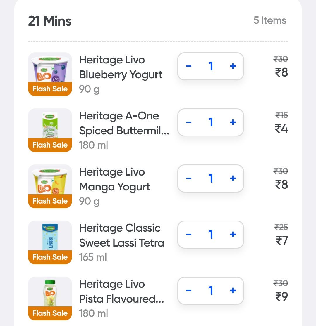 Enjoy great savings on a range of Heritage dairy products. Get your favorites like Heritage A-One Spiced Buttermilk, Livo Blueberry Yogurt, Livo Mango Yogurt, Classic Sweet Lassi, and Livo Pista Flavoured Milk at a massive discount.