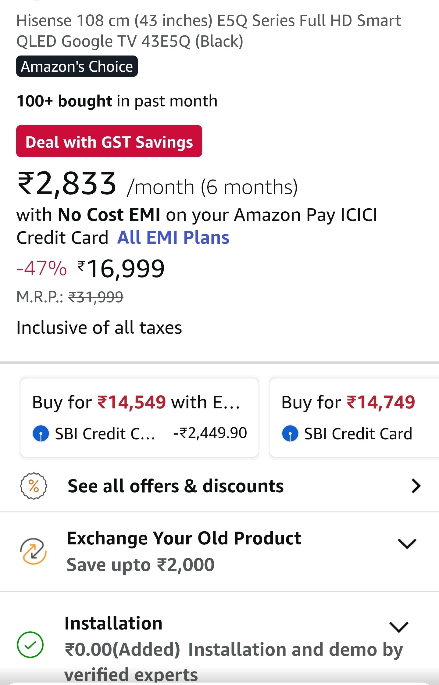 Grab the Hisense 43-inch E5Q Series Full HD Smart QLED Google TV (43E5Q) for just ₹14,549, a massive 55% off its retail price of ₹31,999!