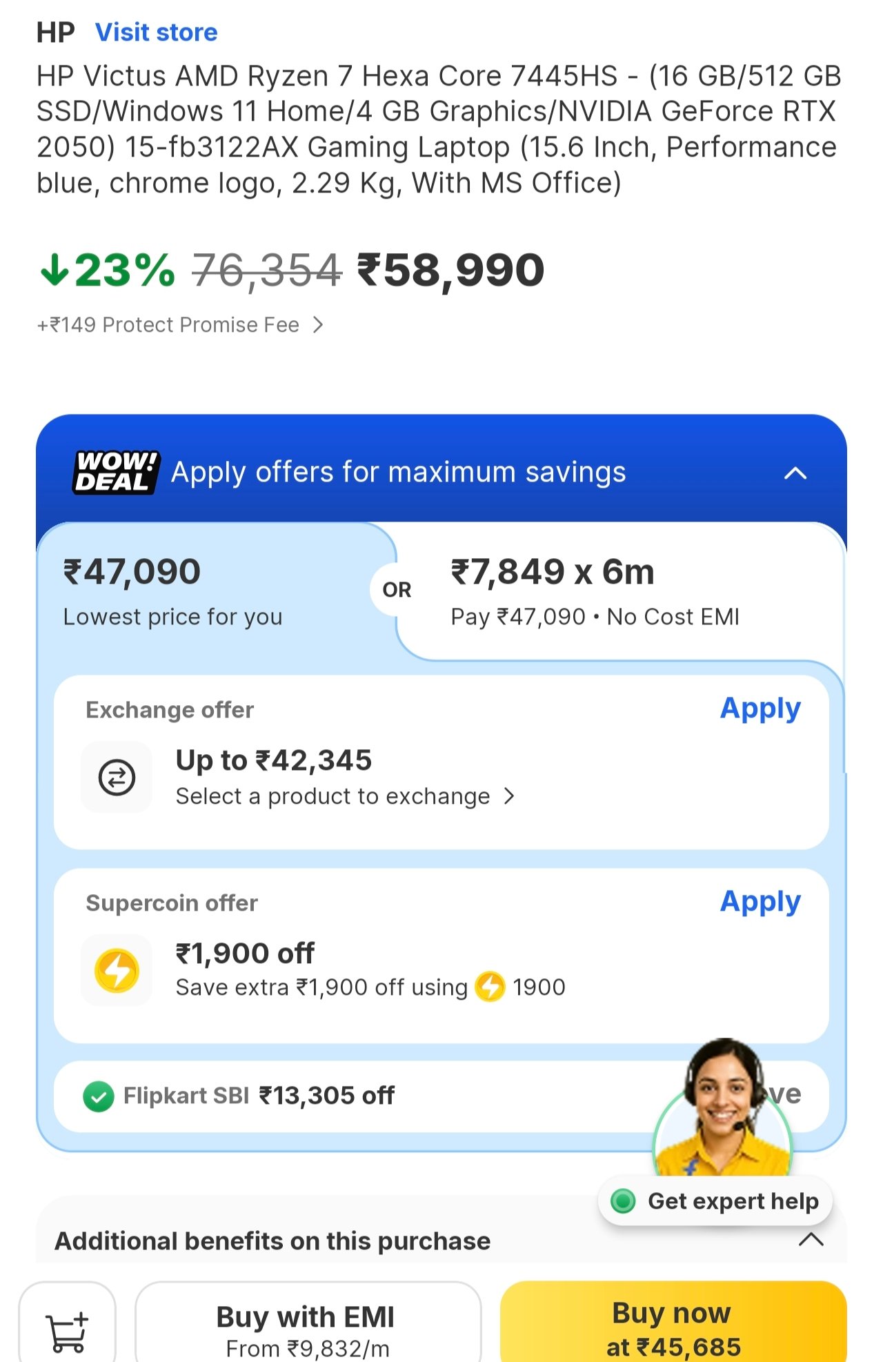 - Redeem an Extra ₹29,495 Off using SuperCoins (Terms and Conditions Apply).