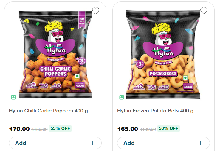 Grab a fantastic deal on Hyfun frozen snacks at JioMart, with discounts up to 57% off! Perfect for quick meals and delicious snacks.