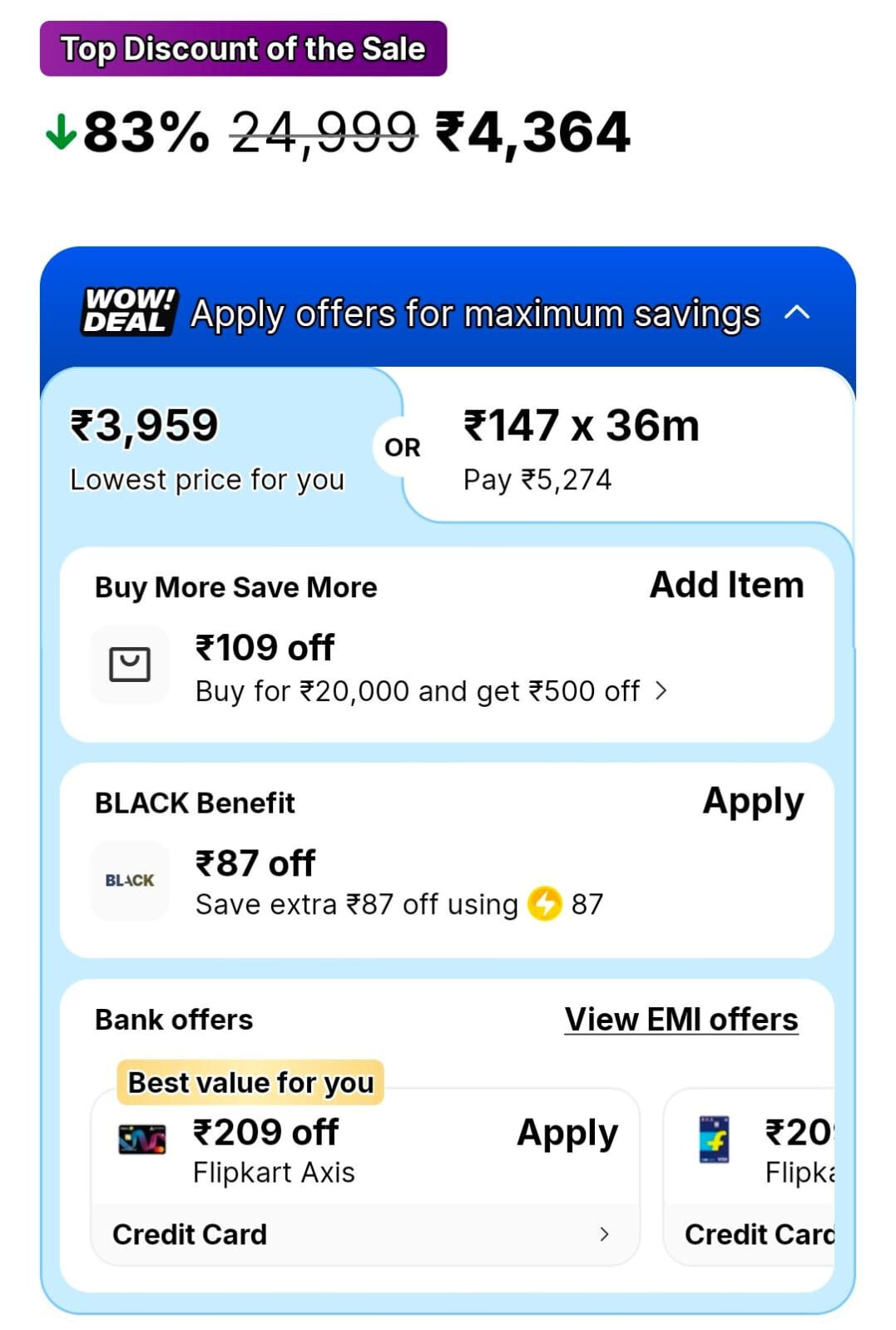 - Bank Offer: 5% cashback on Flipkart SBI Credit Card up to ₹4,000 per calendar quarter.