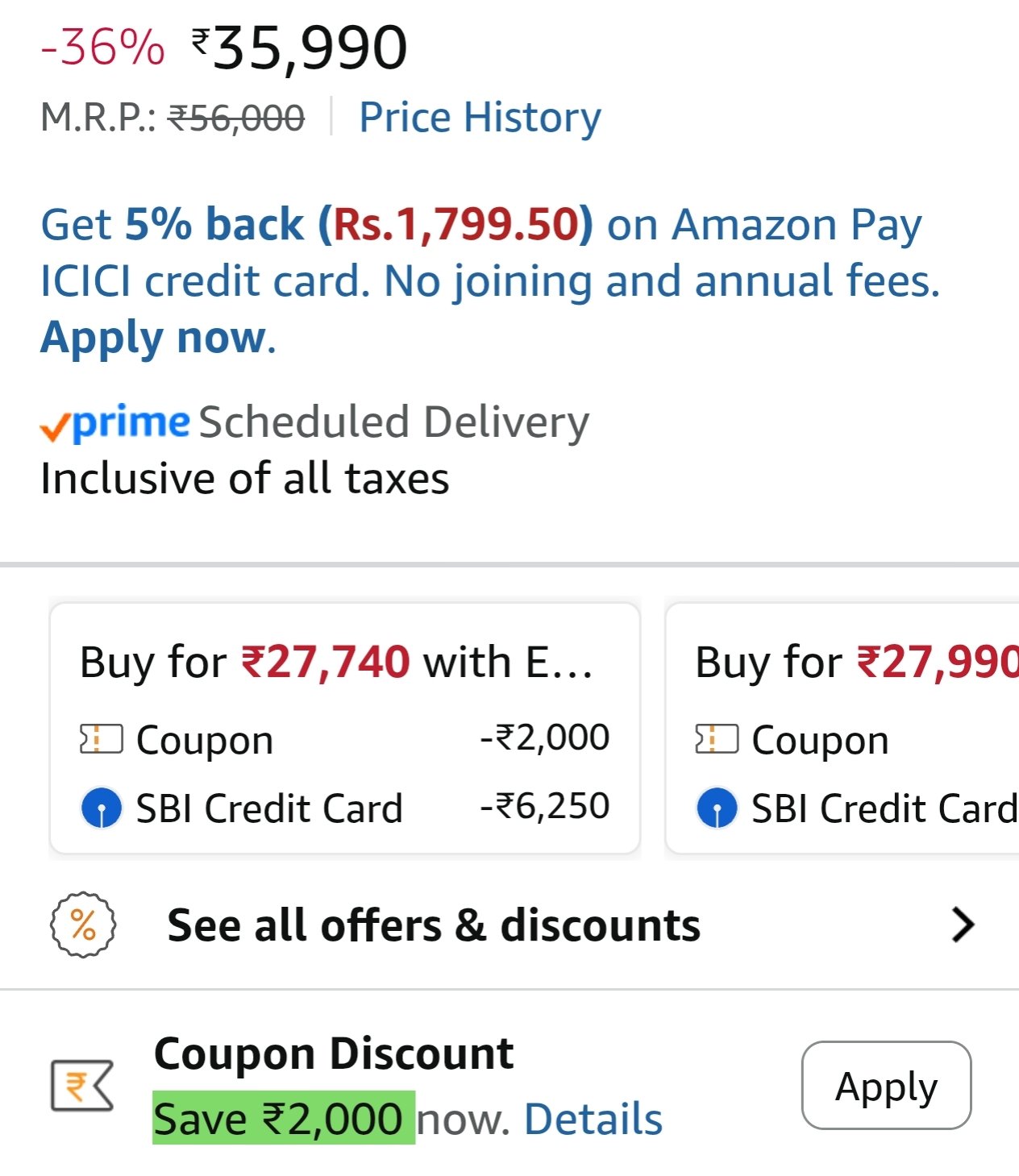 - Get ₹6250 instant discount with SBI Credit Card No Cost EMI transactions.