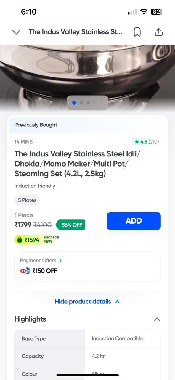Deal Alert: Indus Valley Stainless Steel Idli Maker (4L) on Swiggy Instamart!