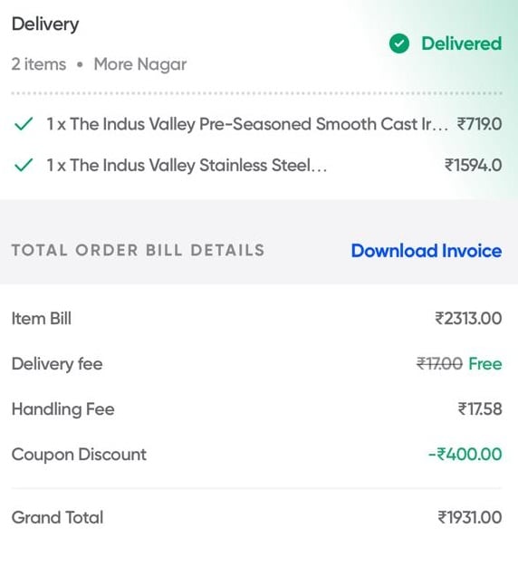 - Check for other available bank offers on Swiggy Instamart to maximize savings. Consider adding other items like the Indus Valley Cast Iron Dosa Tawa (also discounted) to reach the minimum spend for bank offers.