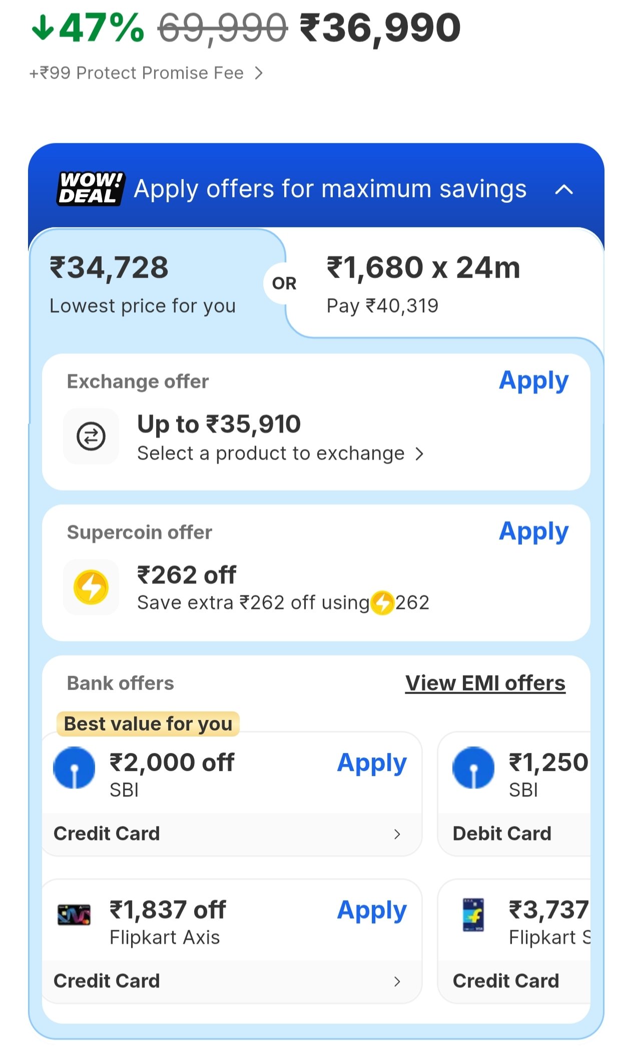 - Enjoy an extra ₹500 off on SBI Credit Card transactions for orders of ₹24,990 and above.