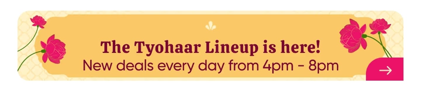 The Tyohaar Lineup brings you new deals every day from 4 PM - 8 PM, perfect for all your festive needs. Don't miss out on these limited-time offers!