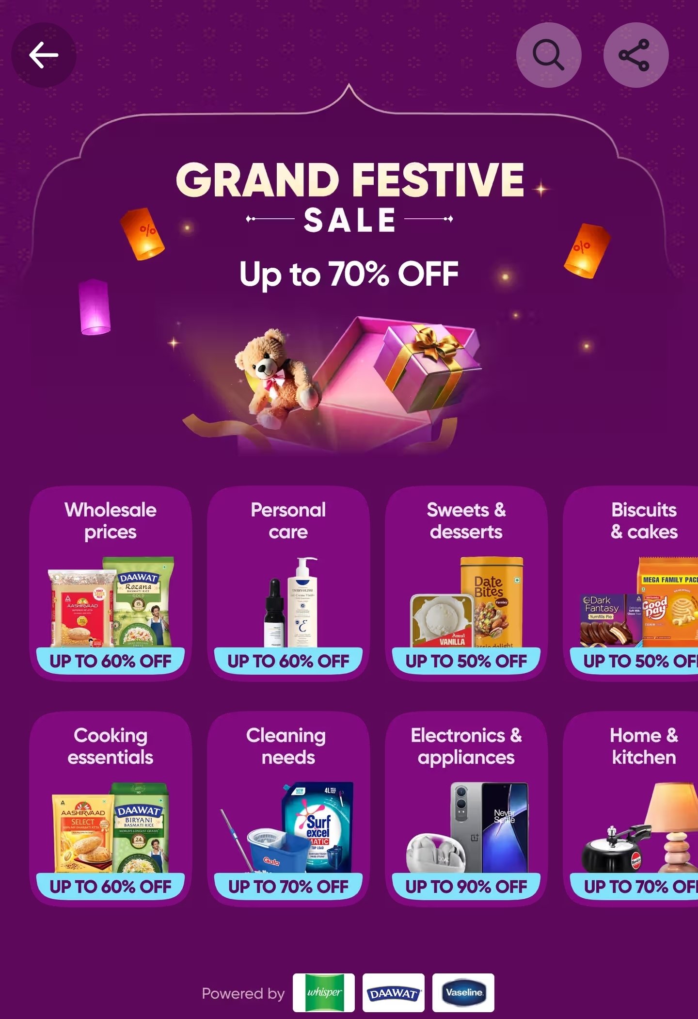 Discover incredible savings and daily exciting offers with the Instamart Grand Festive Sale, running throughout October 2025! Prepare for the festive season with amazing discounts on groceries, puja essentials, electronics, and much more.