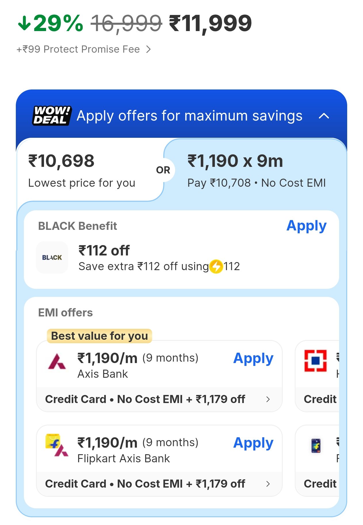 - 10% Instant Discount up to INR 1,750 on Axis Bank Credit Card (Non-EMI & EMI transactions).