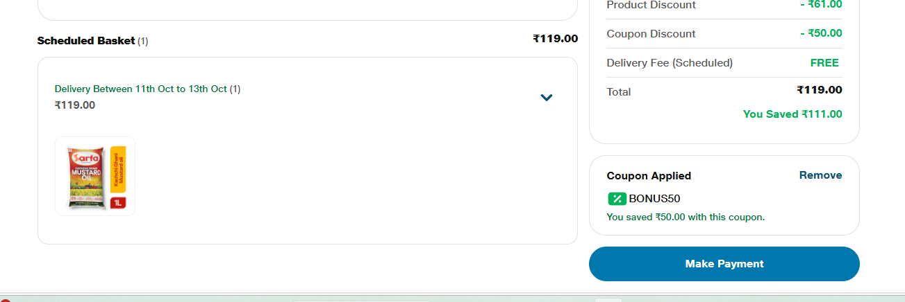 Grab Sarfa Kachi Ghani Cold Pressed Mustard Oil (1L Pouch) for just ₹119 on JioMart. This pure, cold-pressed mustard oil is known for its rich aroma and flavour, suitable for cooking, food, pickles, and massages.