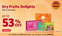 Discover delightful dry fruit selections at JioMart! Enjoy discounts of up to 53% on a wide range of premium dry fruits. Plus, get an additional 10% off by applying coupon code COOK10 at checkout.