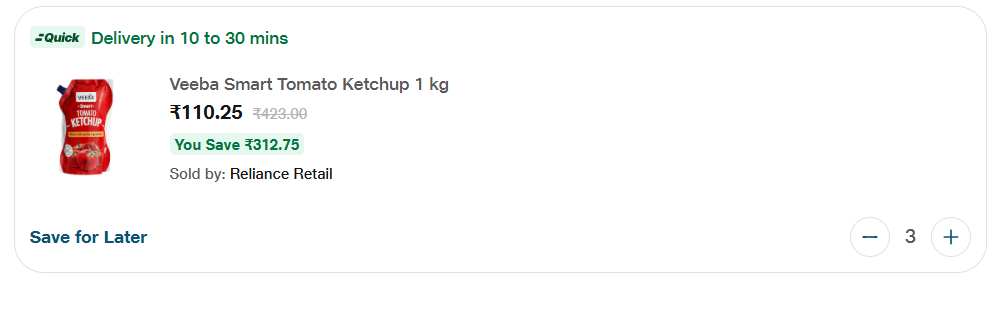 - Product: Veeba Smart Tomato Ketchup (1 kg)
