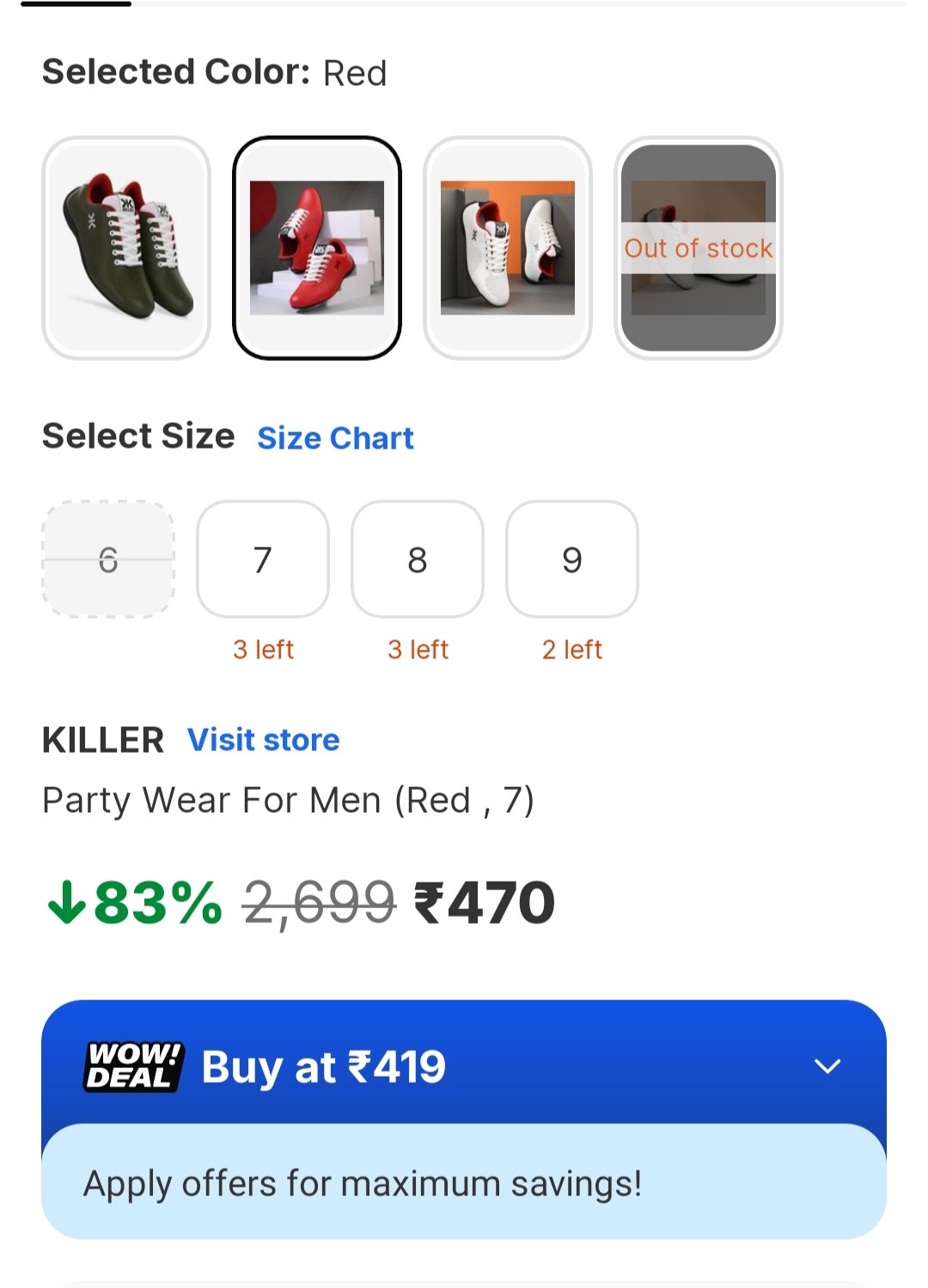 Step up your style with Killer Sports Shoes, now available at an incredible 84% discount on Flipkart!