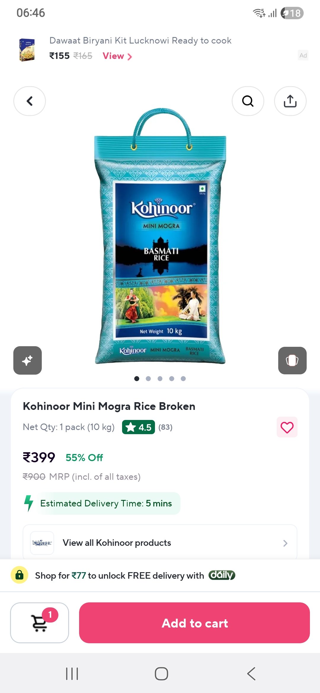 Unbeatable Deal: Kohinoor Mini Mogra Broken Rice - 56% OFF on Zepto!