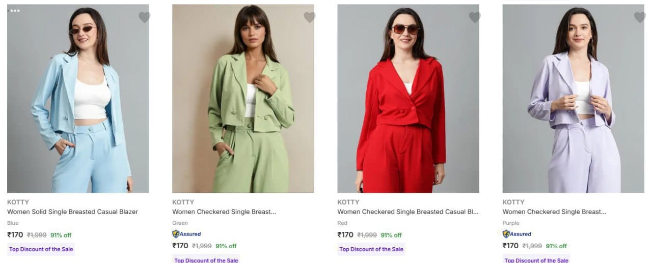 KOTTY Blazers Sale: Up to 91% Off on Trendy Fashion Apparel!