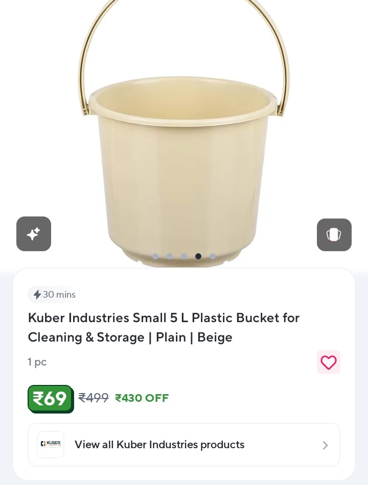 Get the Kuber Industries 5L Plastic Bucket, ideal for various cleaning and storage needs. This versatile and durable bucket comes in a subtle beige color, perfect for any home. Grab this essential household item at a discounted price!