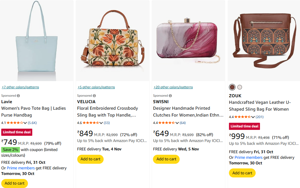 Discover amazing savings on Lavie handbags! Get up to 82% off on a wide selection of stylish bags on Amazon India. Elevate your fashion with premium quality Lavie handbags, perfect for every occasion. Don't miss this limited-time offer to grab your favorite designs at unbeatable prices.