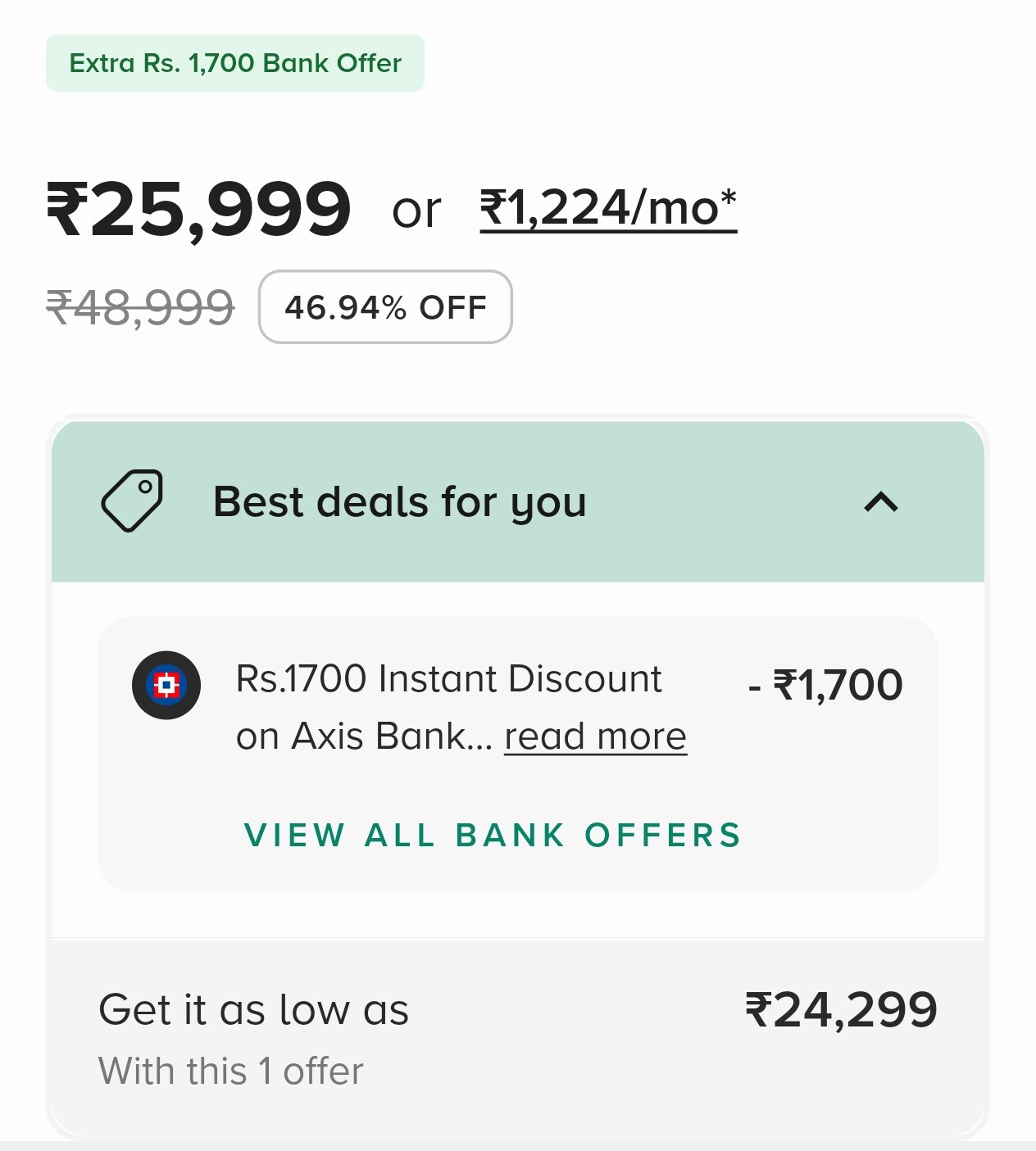 - ₹1700 Instant Discount on Axis Bank Credit Card (select offer on payment page)