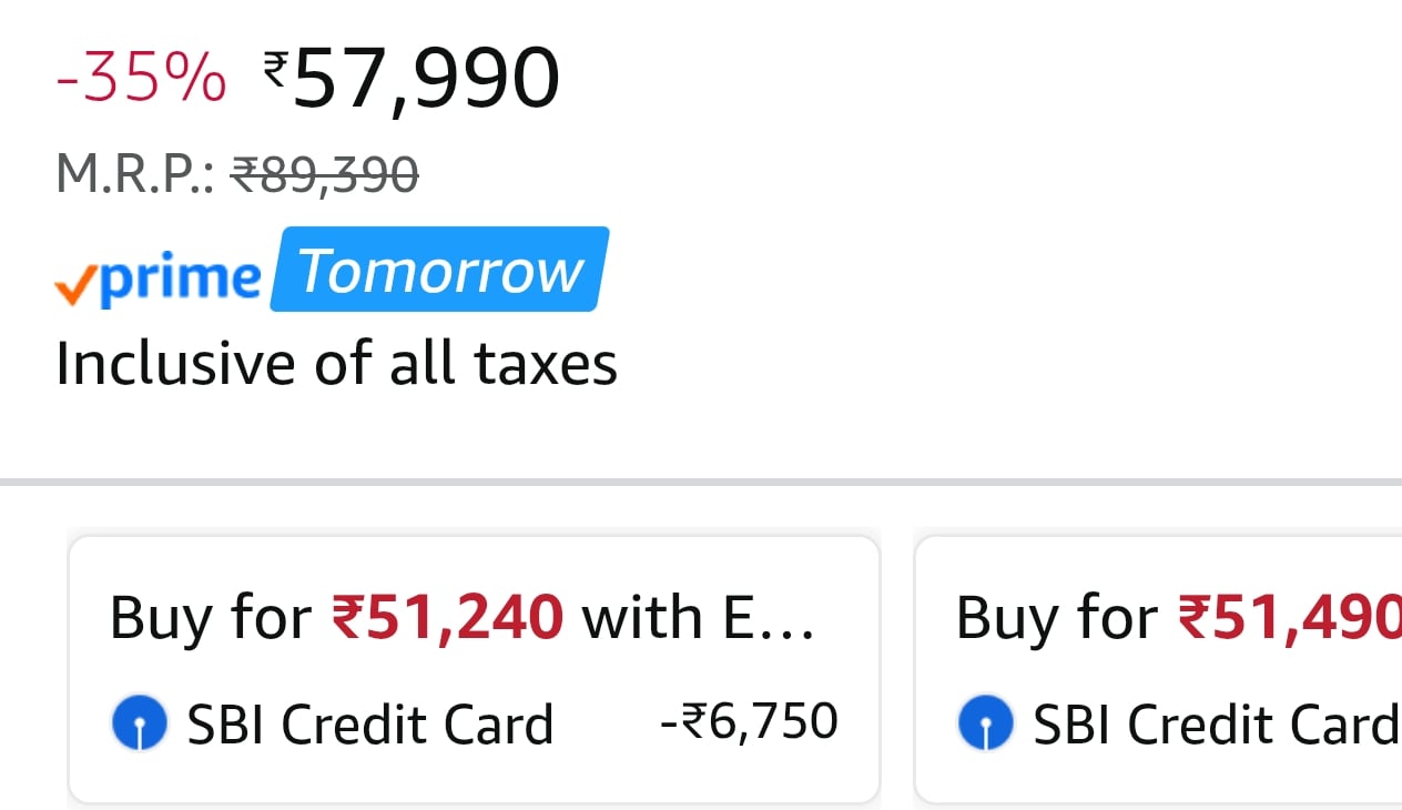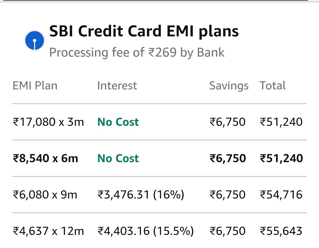- Get an additional ₹6,750 instant discount on SBI Credit Card No Cost EMI transactions.