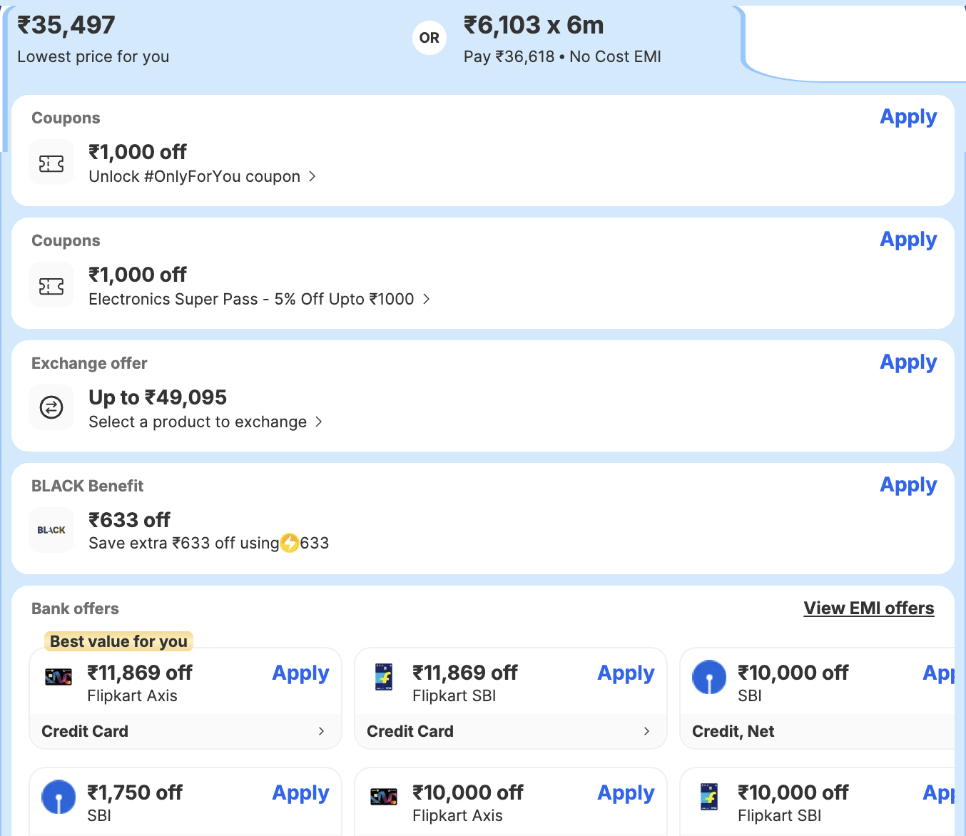 Final effective price after all offers: ₹35,187