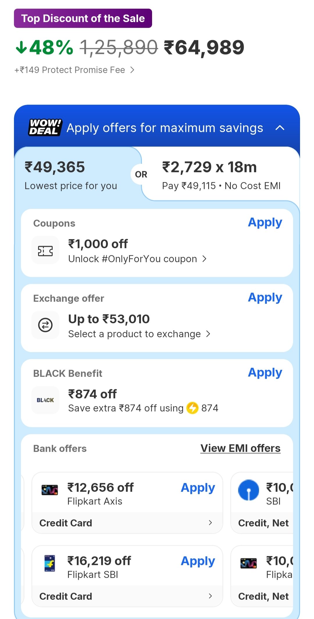 Further enhance your savings with an extra ₹1000 off via coupon and an additional ₹16219 off using a Flipkart SBI Credit Card.