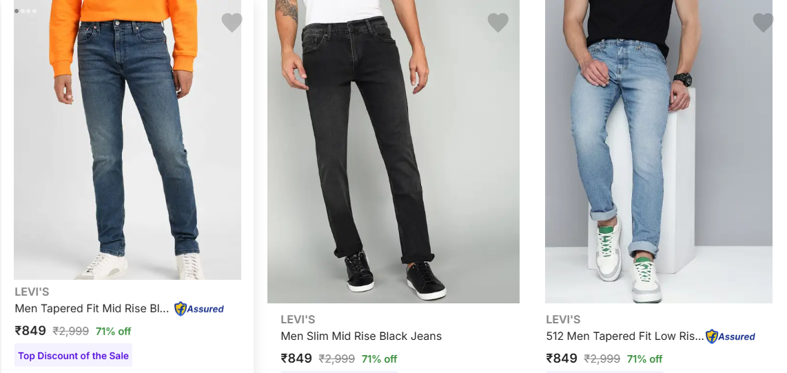 Grab stylish Levis men's jeans at an incredible discount of up to 71% during this exclusive offer on Flipkart.
