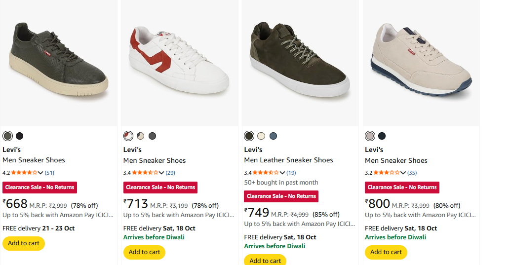 Grab amazing discounts on Levi’s Men’s Sneakers! Enjoy up to 85% off on a wide selection of styles, with prices starting from just ₹749. Don’t miss out on this limited-time offer to upgrade your footwear collection with premium Levi’s sneakers at unbeatable prices.