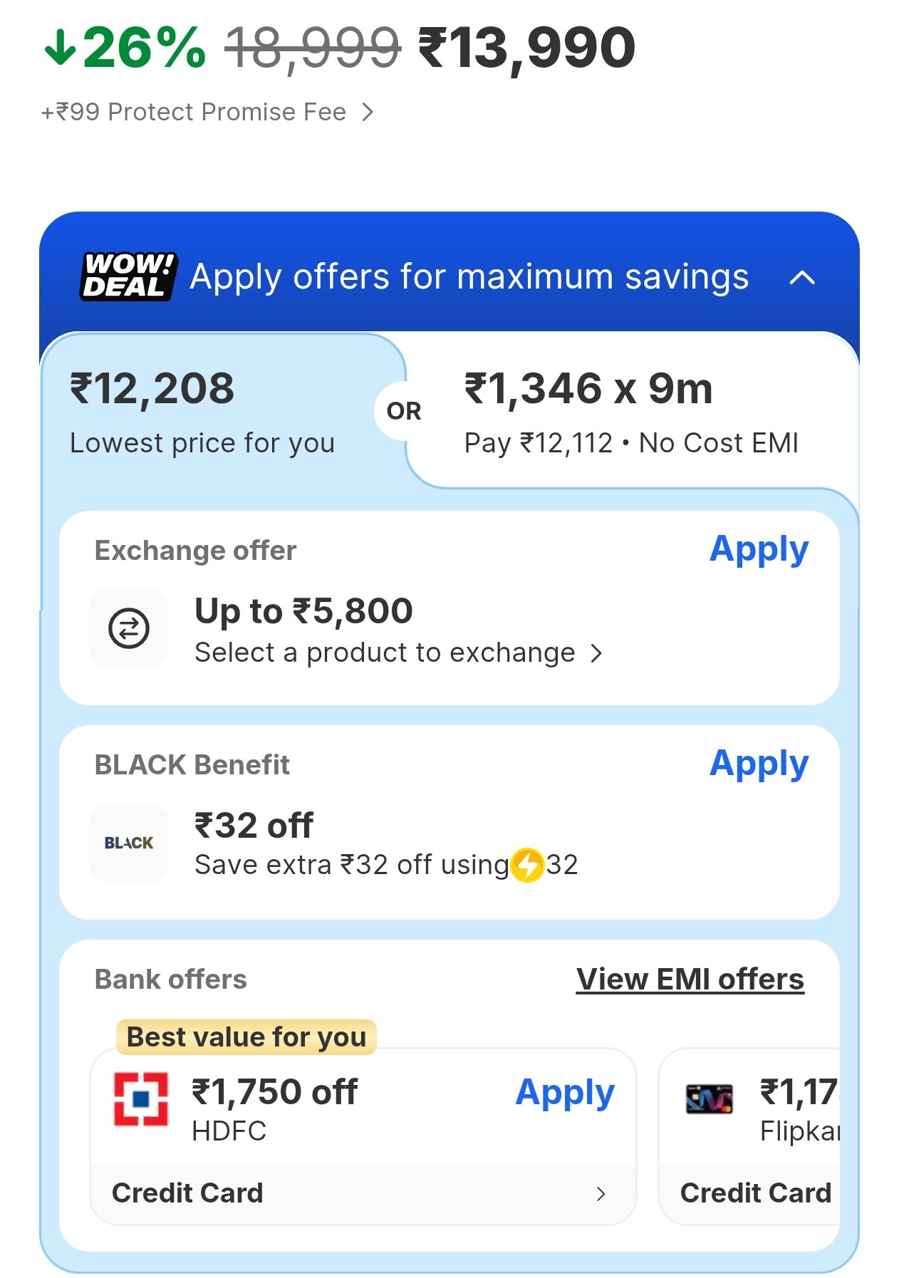 - Additional Cashback: 5% cashback with HDFC Millennia (up to ₹1,000 per billing cycle) or Flipkart Axis Credit Card (up to ₹4,000 per quarter) transactions.