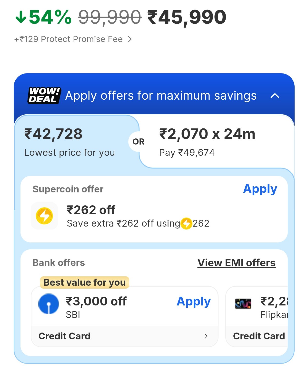 - Extra ₹500 off on Flipkart SBI Credit Card transactions on orders of ₹24,990 and above.