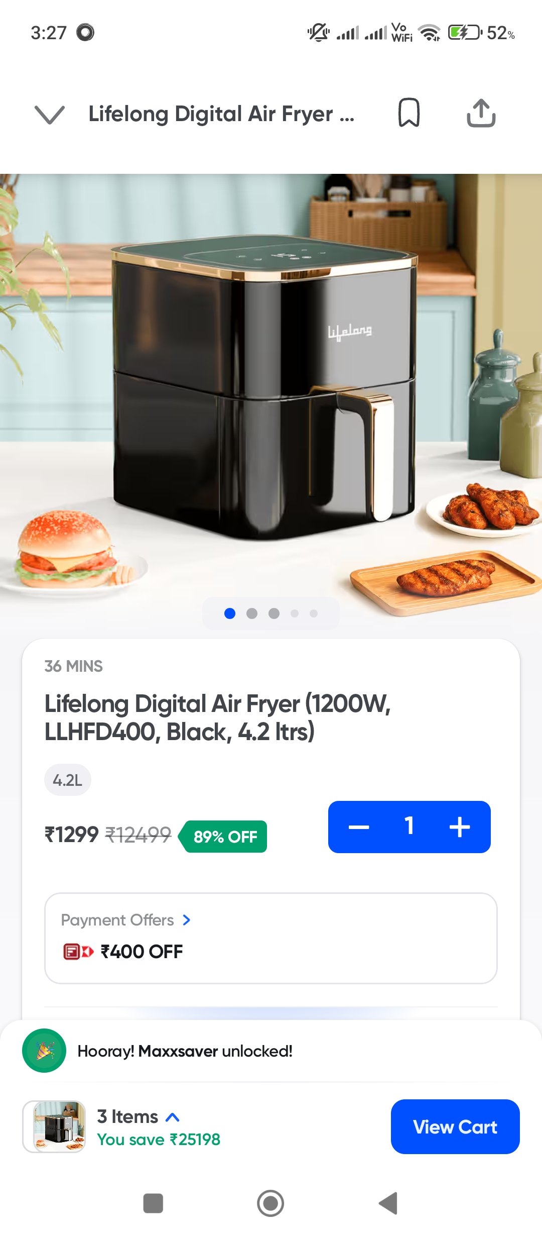 Get the Lifelong Digital Air Fryer (4.2L, 1200W) at an incredible 90% discount! Enjoy healthier meals with this efficient kitchen appliance.