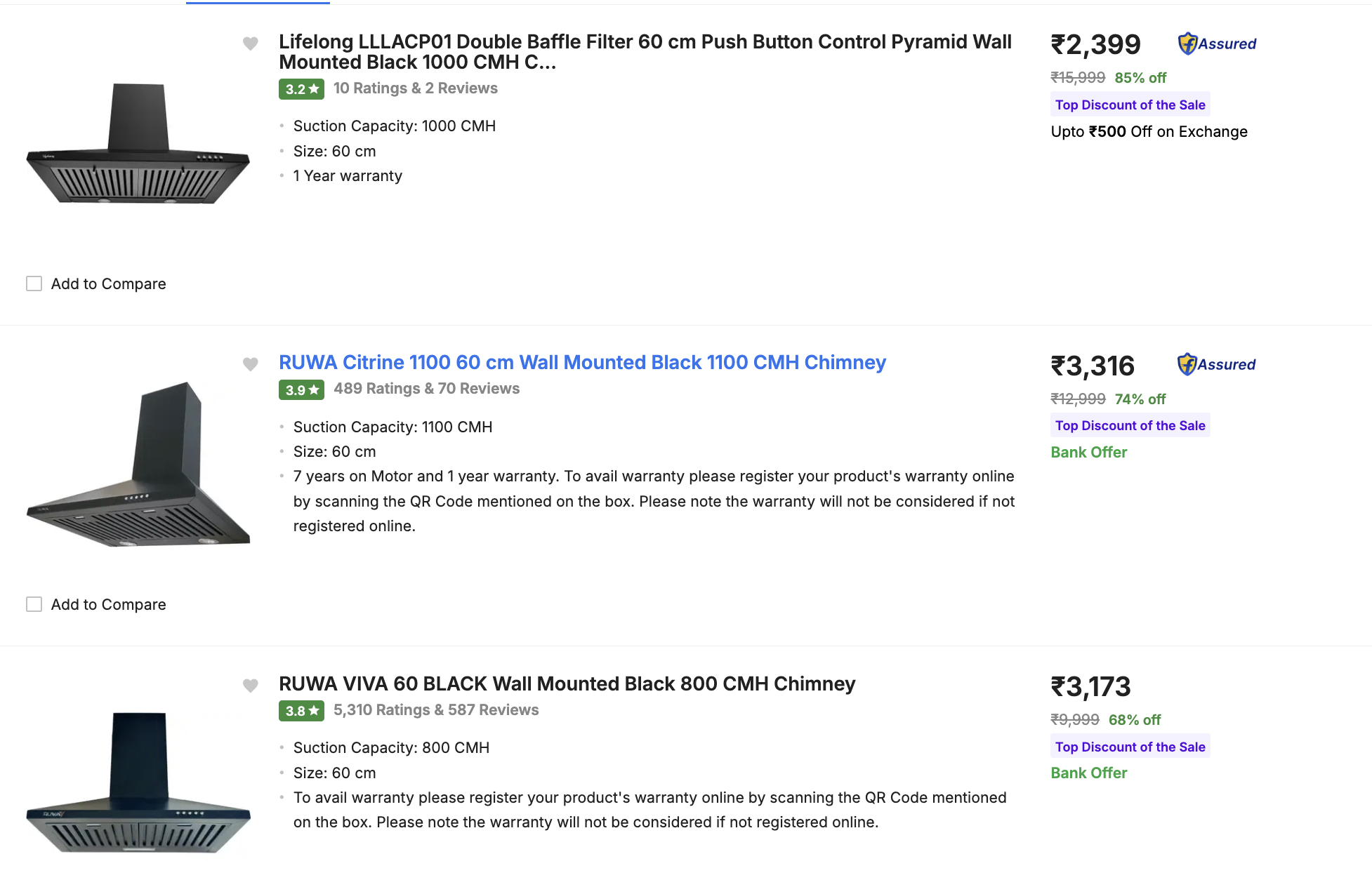 Upgrade your kitchen with incredible savings on Lifelong Kitchen Chimneys! Get up to 88% off on a wide range of models, with prices starting from just ₹2,399.