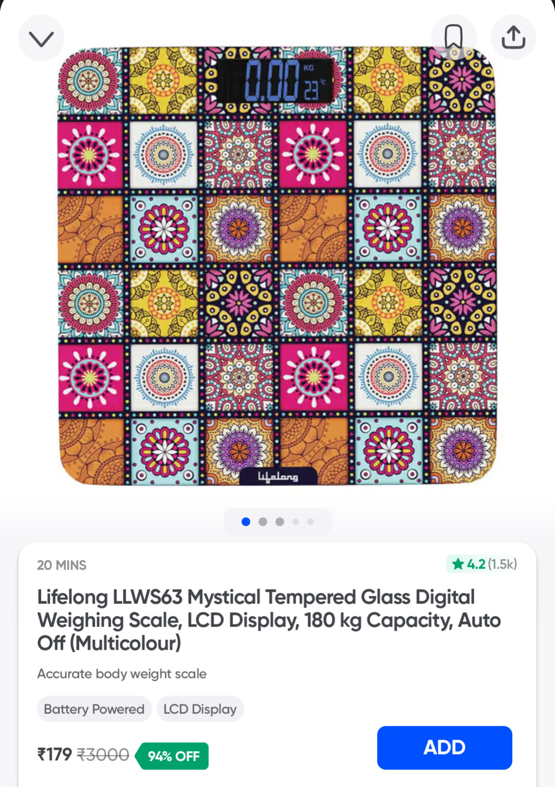 Grab the Lifelong LLWS63 Mystical Tempered Glass Digital Weighing Scale at an incredible discount on Swiggy Instamart!