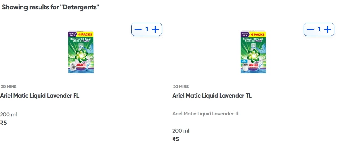 Discover an amazing loot deal! Get Ariel Matic Liquid Detergent (Lavender, Top Load) for an unbelievable price of just ₹5 on Swiggy Instamart.