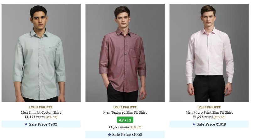 Refresh your wardrobe with premium Louis Philippe men's shirts on Ajio! Discover a fantastic deal with up to 51% off on a wide range of styles, colors, and sizes. Enhance your savings further with an additional 30% coupon discount (up to ₹500).