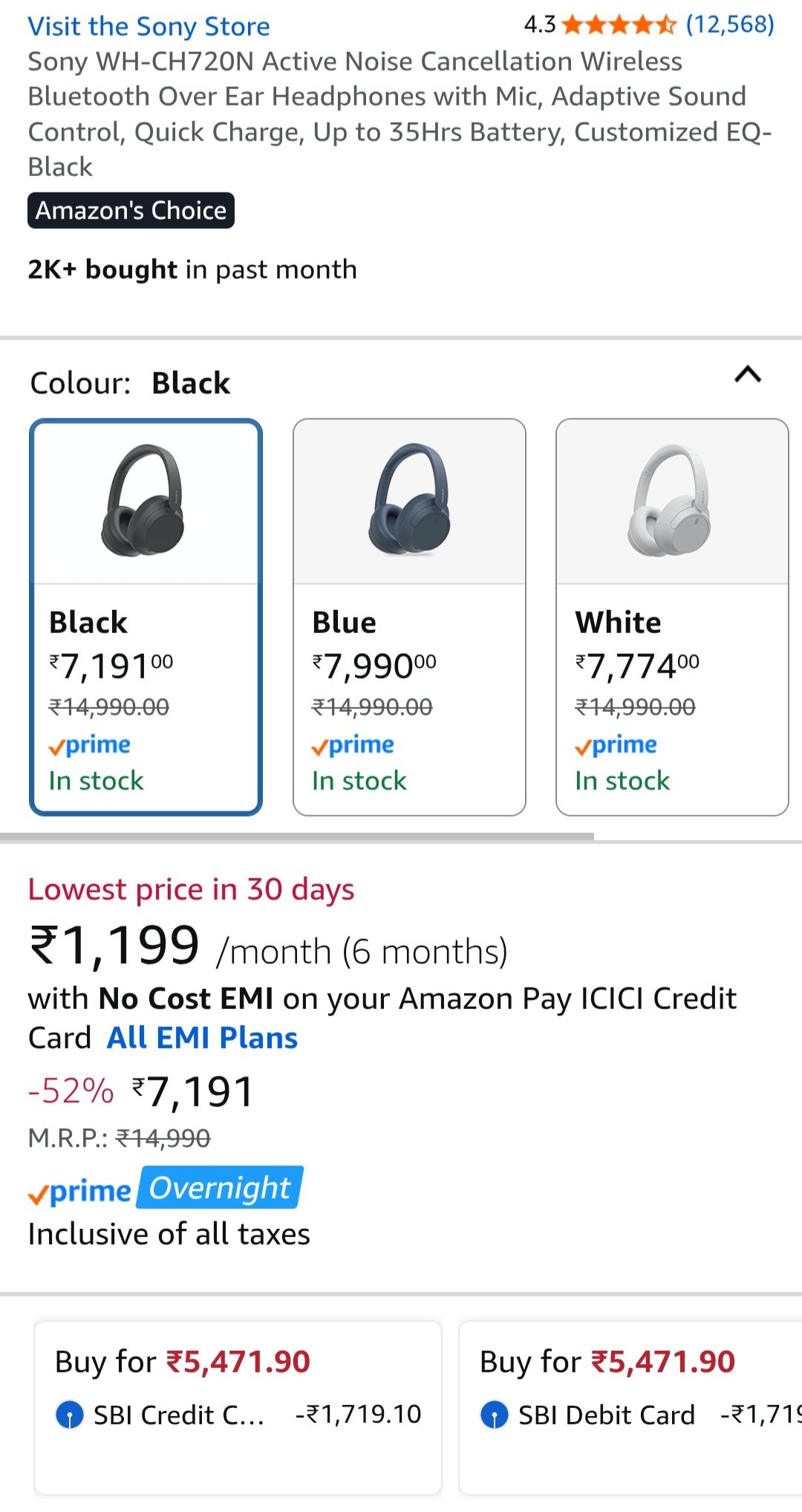 Experience premium audio with the Sony WH-CH720N Active Noise Cancellation Wireless Bluetooth Over-Ear Headphones. These headphones feature industry-leading Active Noise Cancellation (ANC), clear call quality with a built-in mic, Adaptive Sound Control, quick charge functionality, and an impressive battery life of up to 35 hours. Customize your sound experience with the EQ settings.