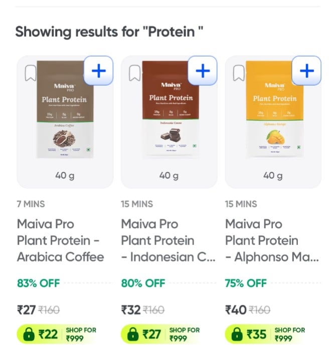 Get the Maiva Pro Plant Protein (16g) for an incredible ₹27 on Swiggy Instamart! Originally priced at ₹160, this deal offers a massive 83% discount.
